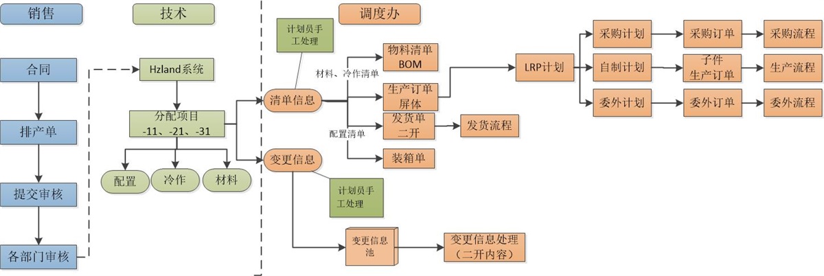 3)銷售到設(shè)計:通過客戶自己的hzland系統(tǒng),對客戶訂單進(jìn)行設(shè)計生產(chǎn),拆分成配置清單、冷作清單、材料清單;